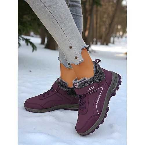 scarpe da ginnastica calde da donna foderate in pelliccia, scarpe invernali casual impermeabili e antiscivolo per l'uso all'aperto durante il freddo