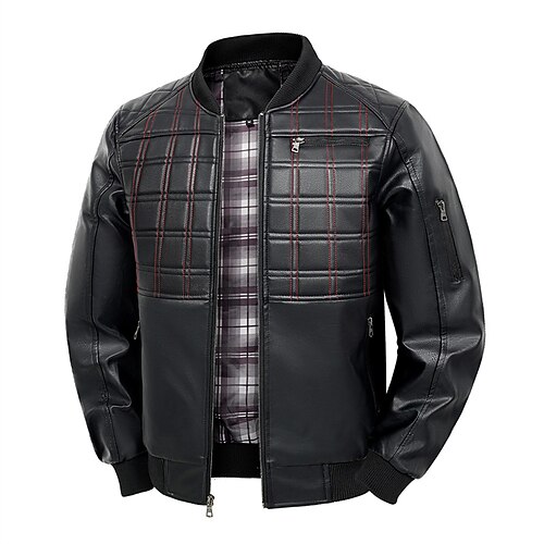 Per uomo Giacca in Ecopelle Giacca da Biker Giacca da Moto Vacanza Quotidiano Antivento Caldo Tasca Pile Inverno Semplice Moda Classico Bavero Regolare Finta pelle Nero Caffè Grigio Giacca