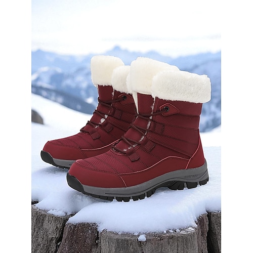 scarponi da trekking invernali impermeabili da donna rosso scuro – ciaspole da esterno antiscivolo, foderate in morbida pelliccia, calde calzature da trekking e da viaggio