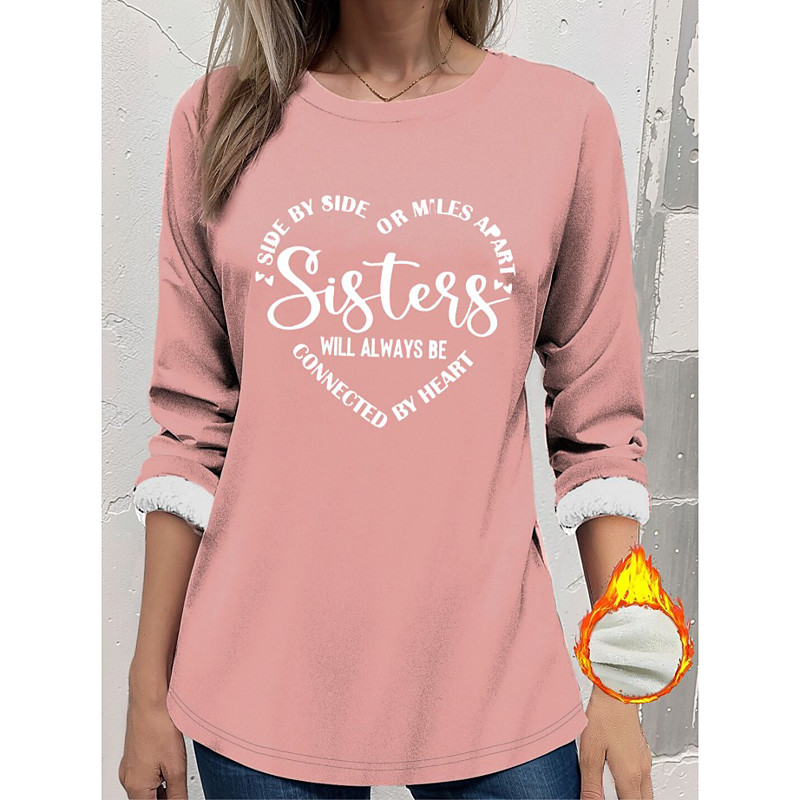 Women's T Shirt Letter Casual Long Sleeve Crew Neck Regular Tops Daily Print Pink Blue Green Gray Spring Fall