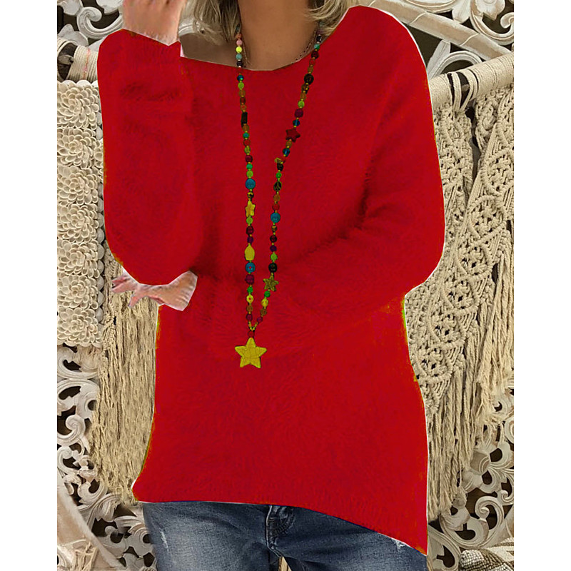 Women's T shirt Crew Neck Long Sleeve Tunic Long Tops New Year Blue Spring, Fall, Winter, Summer