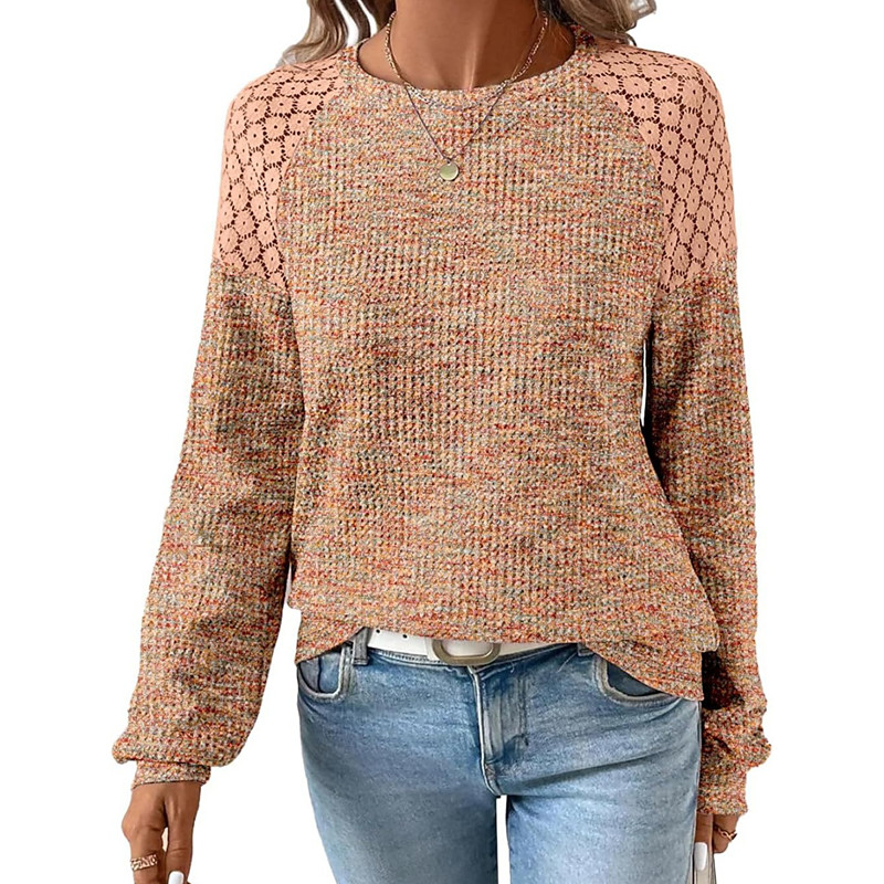 Women's Blouse Plain Vintage Stylish Long Sleeve Crew Neck Regular Tops Daily Holiday Going out Lace Patchwork Black White Pink Wine Navy Blue Spring Fall