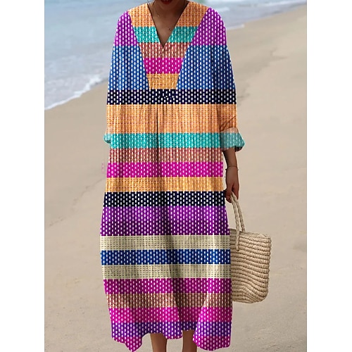 Per donna Abito maxi Vestito Estivo Abito a Tubino Vacanza Casual Spiaggia Uscire Vestibilità comoda Grafico Geometrico Astratto Manica Lunga Scollo a V Rosso violaceo Rosso arancione Fucsia Estate
