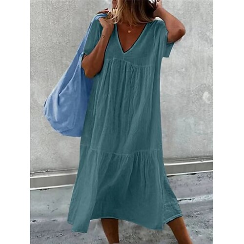 Per donna Abito maxi 100% cotone Vestito a caftano Vestito Casual Essenziale Moderno Quotidiano Weekend Vestibilità comoda Semplice Mezza Manica Scollo a V Nero Blu marino Marrone Verde Estate