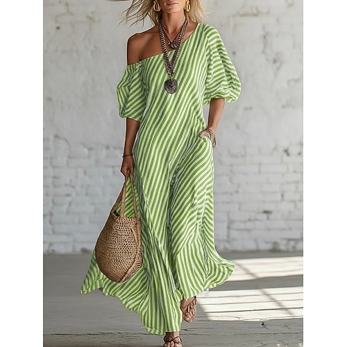 Per donna Abito maxi Vestito Casual Abito a trapezio Elegante Spiaggia Vestibilità comoda Grafico A righe Manica Corta Monospalla Blu Nero Rosa Rosso Estate Primavera