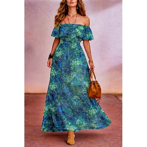 abito lungo in chiffon da donna prendisole abito a tubino abito a trapezio abito con spalle scoperte vacanza festa festa in spiaggia matrimonio vestibilità standard floreale grafica senza maniche