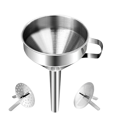 imbuto da cucina in acciaio inossidabile con 2 filtri staccabili imbuti da cucina multiuso in metallo di qualità alimentare con 2 filtri rimovibili per il trasferimento di ingredienti liquidi o secchi