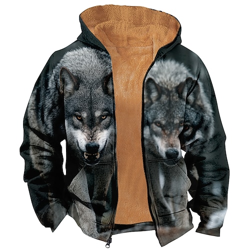 Per uomo Animale Lupo Stampa 3D Giacca di pelle Felpa Moda Quotidiano Pantaloni Tattici Da caccia Collo alla coreana All'aperto Abbigliamento casual alla moda Feste Marrone Marrone 2 Marrone 3 Con zip