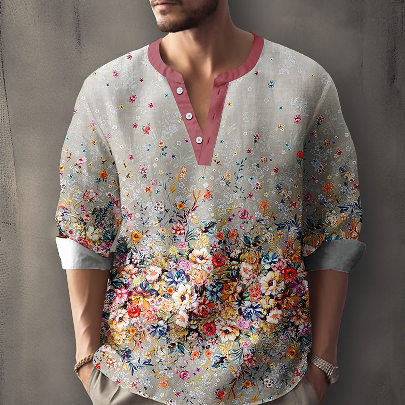 Men's Floral Polo Long Sleeve Polo Shirts Lapel Business Casual Athleisure Daily Wear 3D Print Buttons Spring Fall Winter Blue Purple Orange