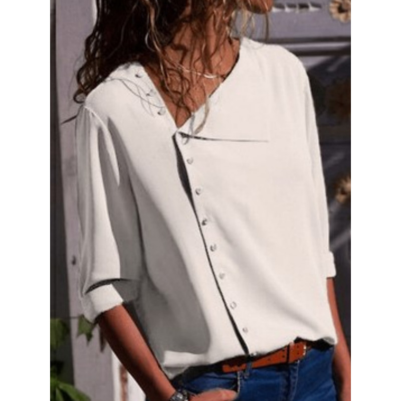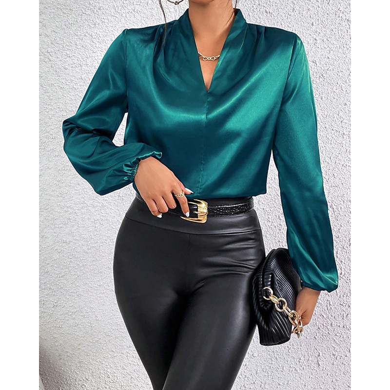Women's Blouse Solid Color Stylish Casual Long Sleeve V Neck Regular Tops Daily Patchwork Mesh Black Spring Fall Winter