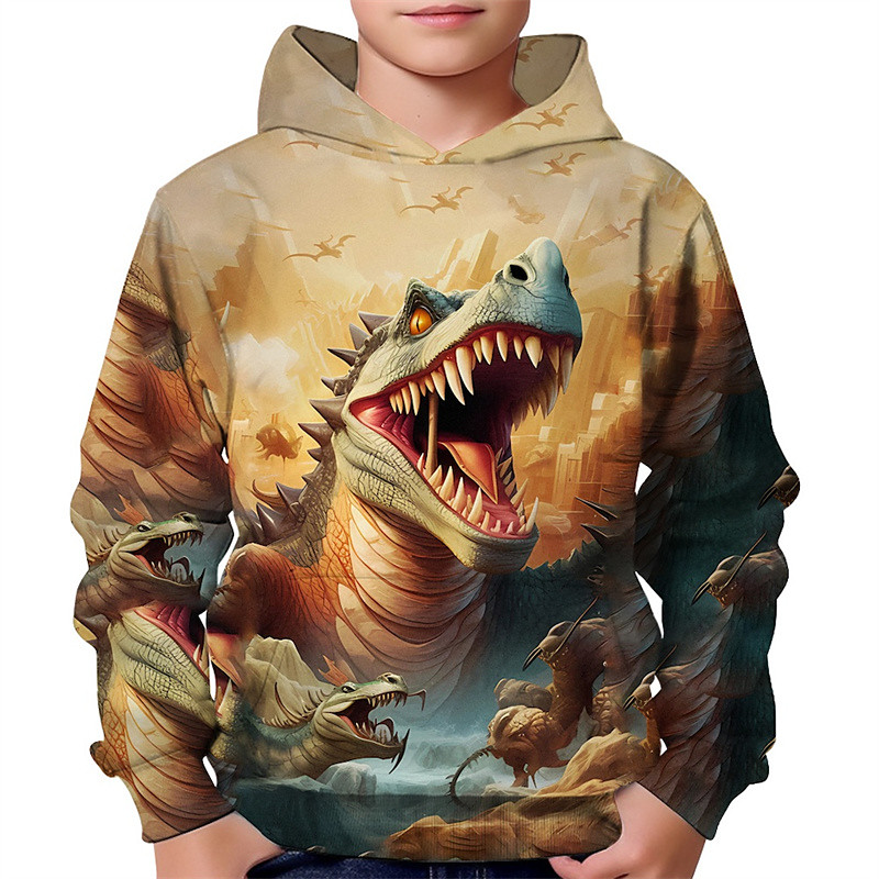 Boys' 3D Dinosaur Hoodie Long Sleeve Spring Fall Fashion Streetwear Kids 4-12 Years Hooded Outdoor Casual Daily Regular Fit