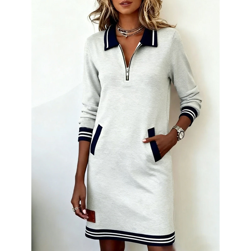 Women's Knee Length Dress Shift Dress Casual Street Holiday Regular Fit Plain Long Sleeve Crew Neck Blue White Red Khaki Spring Fall