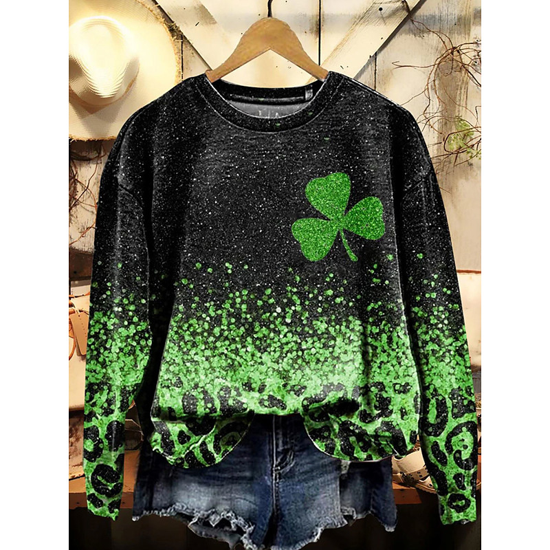 Women's Pullover Sweatshirts Graphic Shamrock Casual Long Sleeve Crew Neck Regular Tops Casual Street Dailywear Print Black Green Spring Fall Winter