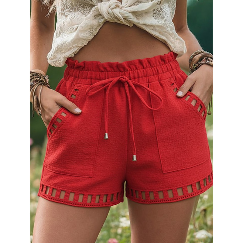 Women's Linen-Inspired Shorts Vacation Basic Short Mid Waist Comfort Stretchy Black White Red Green Summer Spring