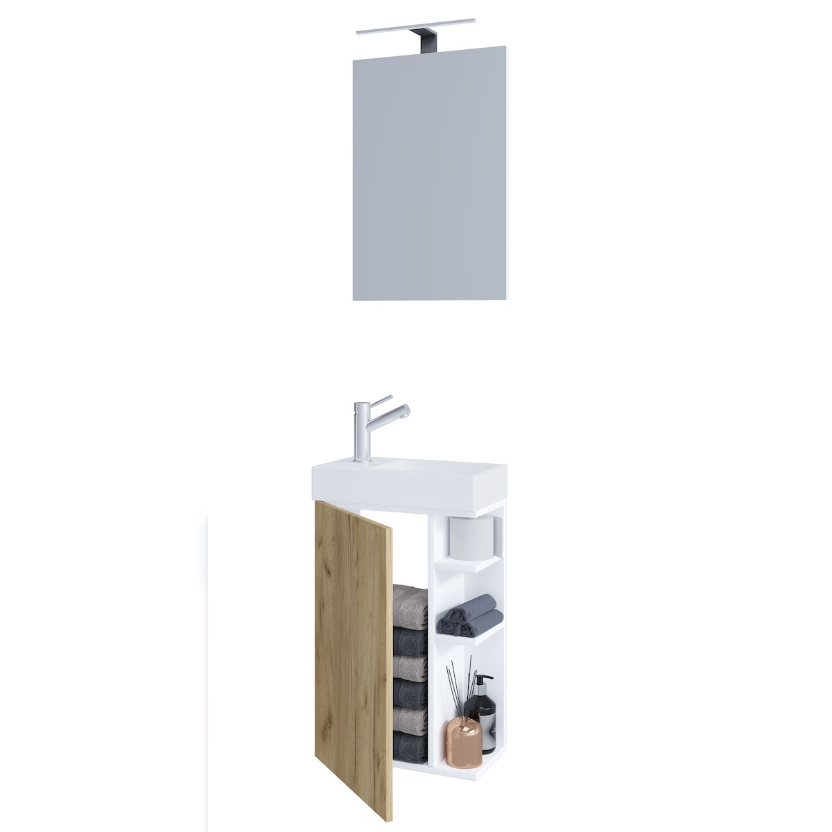 VCM Badmöbel Waschtisch Lumia Weiß / Honig-Eiche H. 129 x B. 40 x T. 22 cm