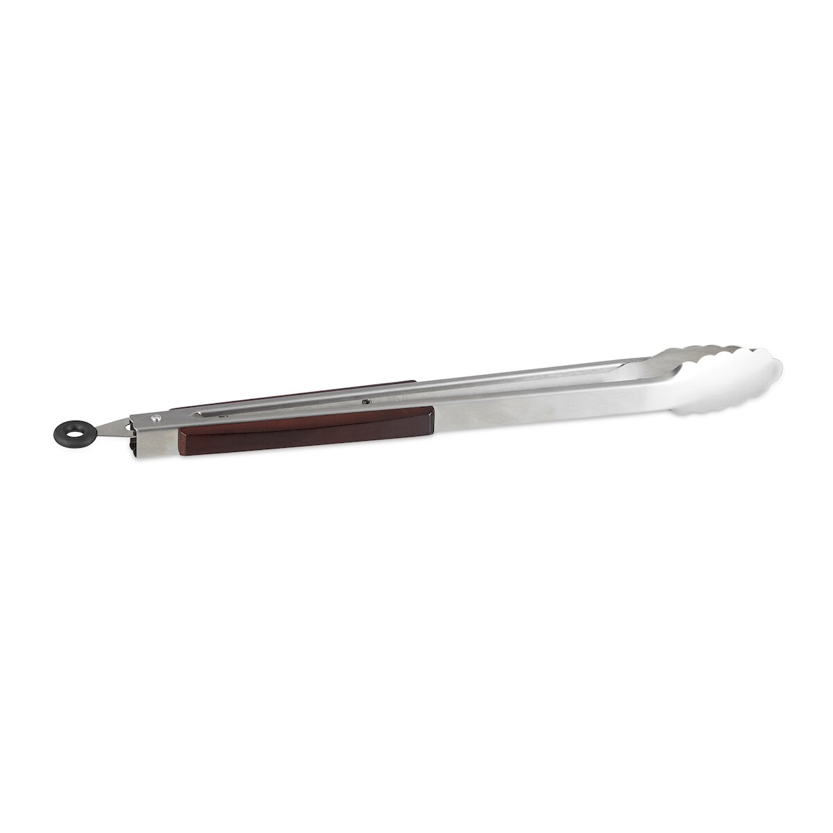 Relaxdays Küchenzange Edelstahl, Grillzange m. Holzgriff, 38 cm Edelstahlzange, silber