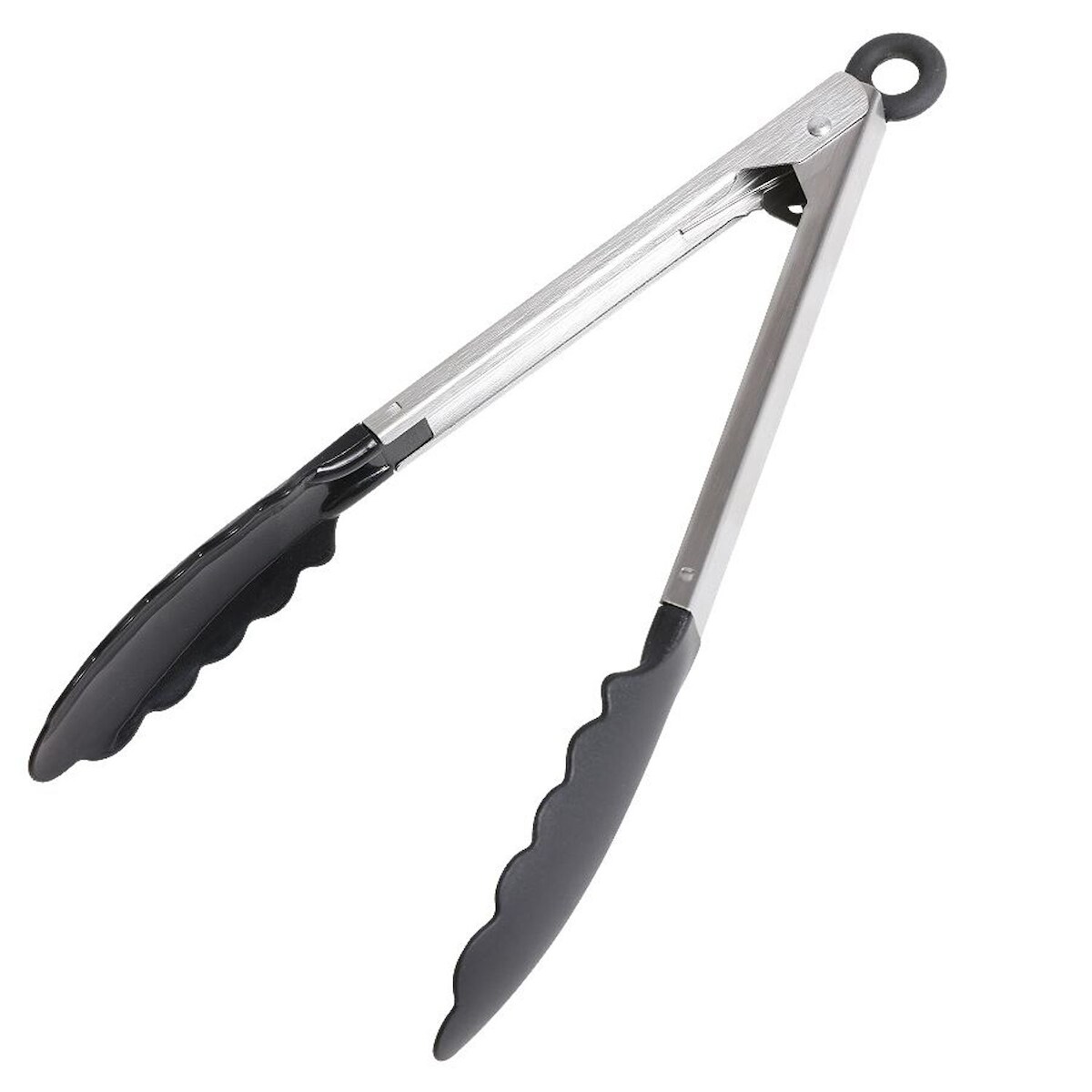 robuste Küchenzange aus Edelstahl mit ergonomischem, rutschfestem Griff Mehrzweck-Grillzange mit gezacktem Griff, Koch- und Servierzange für Fleisch, Brot, Gemüse, BBQ