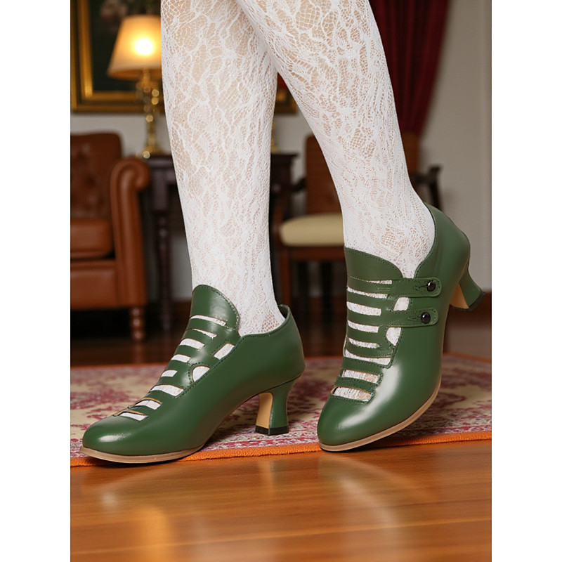 Damenstiefeletten im viktorianischen Stil mit Schnürung und Vintage-Brogue-Details – High Heels aus Kunstleder und Stoff für Retro-Mode