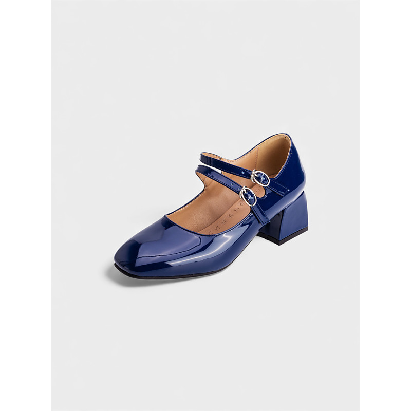 Women's Purple Patent Faux Leather Mary Jane Heels with Double Buckles – Fun Carnival Style, Perfect for Festive Celebrations and Parades