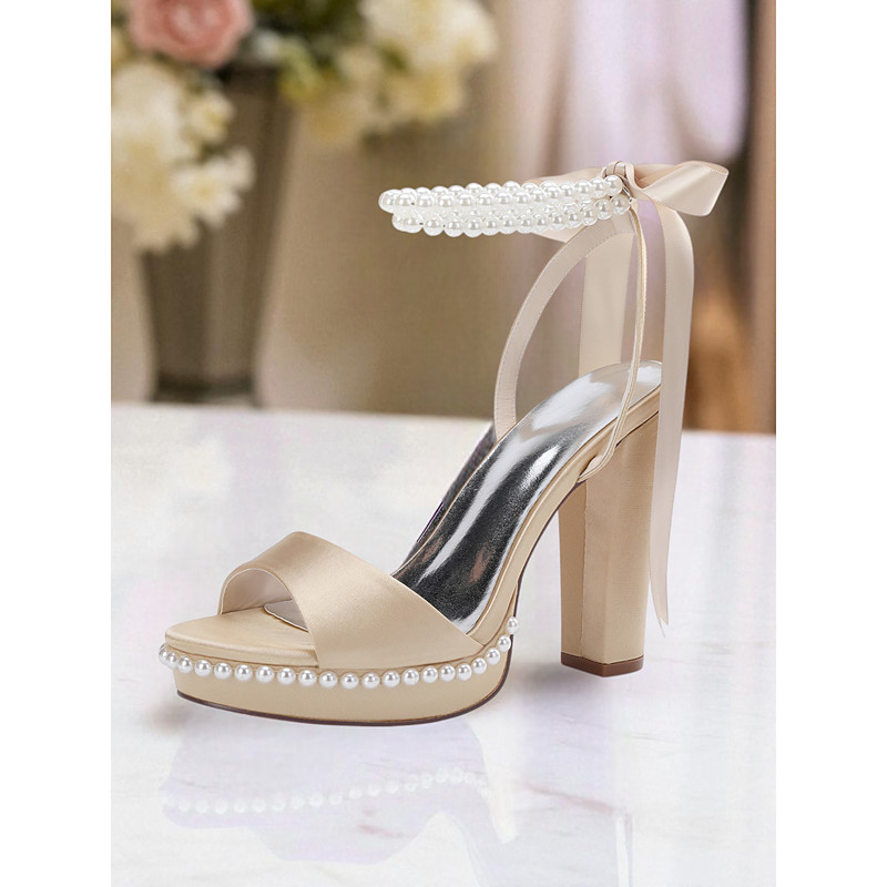 Damen Satin Plateau High Heel Sandaletten mit Peep Toe und Fesselriemchen – elegante Brautschuhe für Hochzeiten und formelle Anlässe
