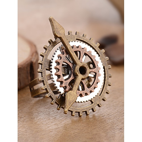Anello da donna in lega antica steampunk con ruota dentata e lancetta dell'orologio - accessorio industriale multicolore per carnevale e travestimenti
