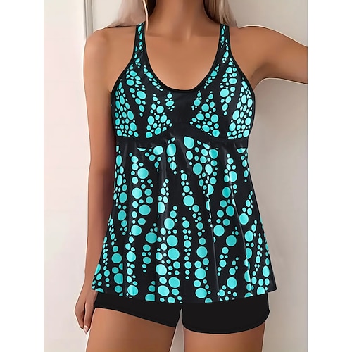 Women's Tankini 2 Piece Swimsuit Leopard Boy Leg Backless Vacation Beach Wear Polka Dot U Neck Sleeveless Bathing Suits
