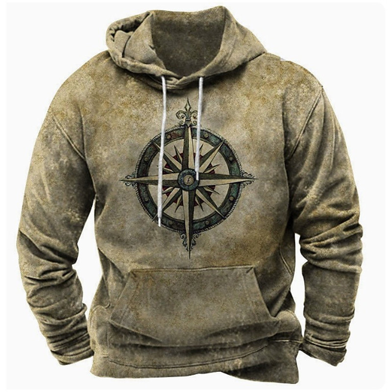 Men's Hoodie Brown Brown 2 Hooded Print Pocket Sports Outdoor Daily Holiday Polyester Vintage Streetwear Basic Spring Autumn / Fall Clothing Apparel Hoodies Sweatshirts