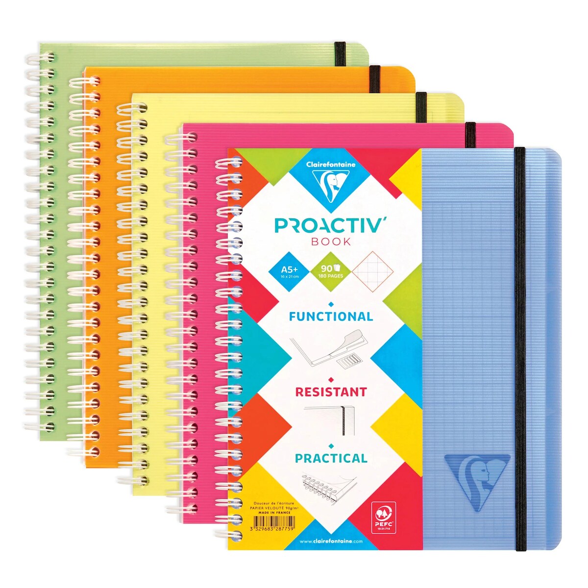 Clairefontaine 5x Linicolor FRESH, PROACTIV'BOOK mit Doppelspirale 16x21 cm, 80 Bl 90g kariert mit Rand, Einband aus gerilltem PP - Sortiert 328775C