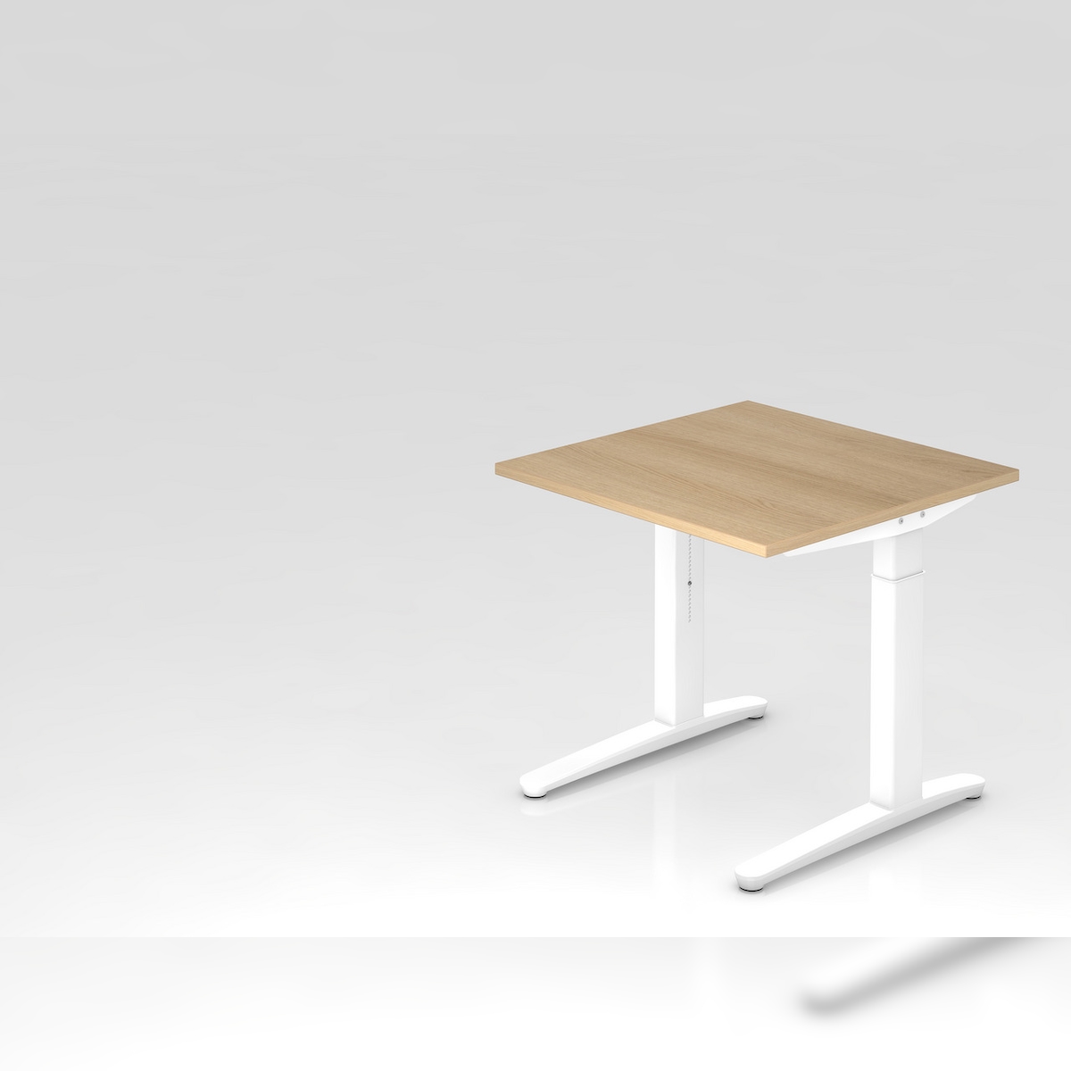 PROREGAL Schreibtisch Mika | Eiche | Weißes Gestell | BxT 80x80cm | Arbeitshöhe 65-85cm | höhenjustierbar, 1cm Raster | C-Fuß-Gestell | Bürotisch