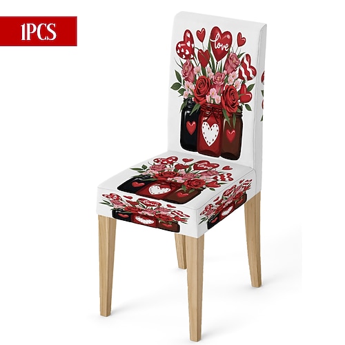Valentinstag-Stuhlhusse aus Stretchmaterial, schwarz-weiß kariert, mit Herz- und Schleifenmotiv, waschbar, für Esszimmer, Küche, Wohnzimmer, Restaurant oder andere Winterdekoration, 1/4/6 Stück