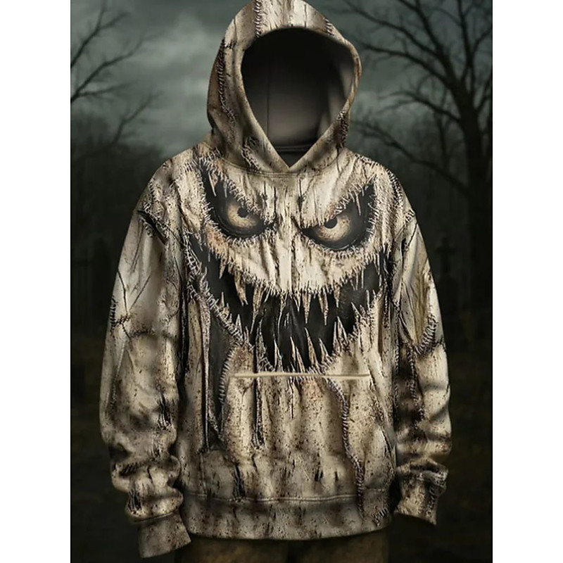 Men's Graphic Monster Hoodie Fashion Daily Casual Long Sleeve Hooded Vacation Party Streetwear Festival Beige Printing Fall Winter Designer S M L XL 2XL 3XL