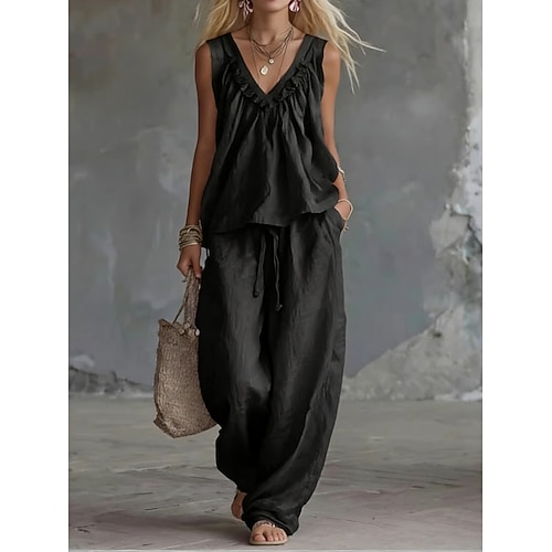 Per donna Set di biancheria in cotone Set da due pezzi Set di Pantaloni Senza Maniche Scollo a V Tinta unica Moda Streetwear Casuale Quotidiano All'aperto Nero Giallo Rosa Estate Vestibilità regolare