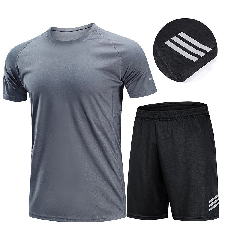 Men's Workout Suits 2 Piece Sports Set Solid Colored Clothing Suit Summer Black WhiteBlack Basketball Running Yoga High Waist Quick Dry Short Sleeve Sport Activewear Micro-elastic Regular Fit