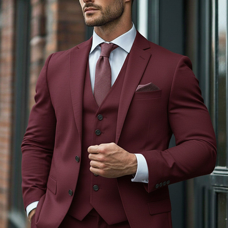 Men's Wedding Casual Business Suits Notch Lapel Black Burgundy Formal Solid Colored Slim Fit 2 Piece Single Breasted Two-buttons