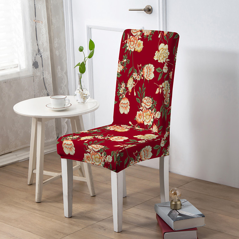 Christmas Dining Chair Cover, Geometric Printed Polyester Slipcover, Elastic Non-Slip Chair Protector for Home or Party