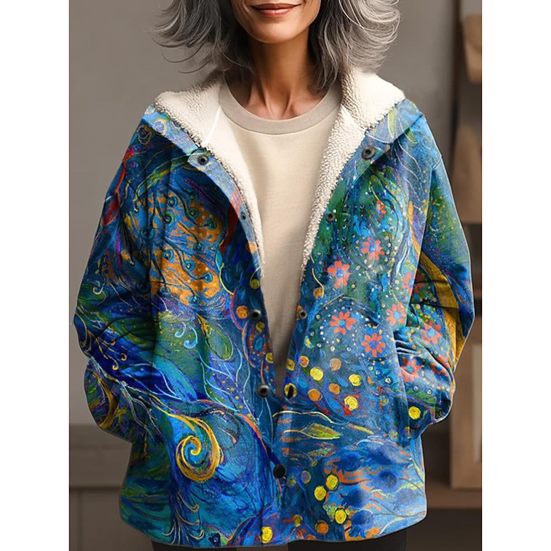 Women's Winter Coat Winter Jacket Warm Quick Dry Buttons Daily Modern Casual Comfortable Floral Vacation Casual Athleisure Daily Short Collarless Regular Fit Long Sleeve Outerwear Black Pink Blue