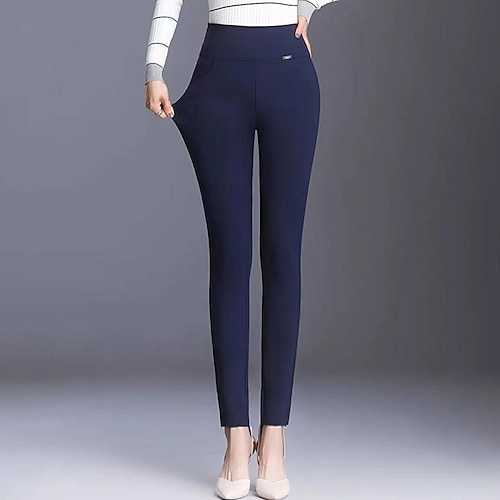 Per donna Leggings casual Pantaloni da salotto con tasche Vita Alta Palestra All'aperto Corsa Pantaloni Tinta unica Blu scuro Gli sport Abbigliamento sportivo