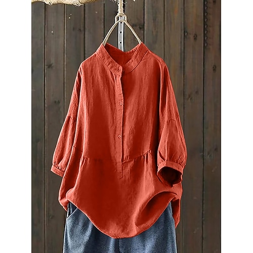 Per donna Blusa Tinta unica Elegante Casual Manica Lunga Collo Alto Top Regolari Quotidiano Bottoni Blu Nero Bianco Rosso Grigio Primavera