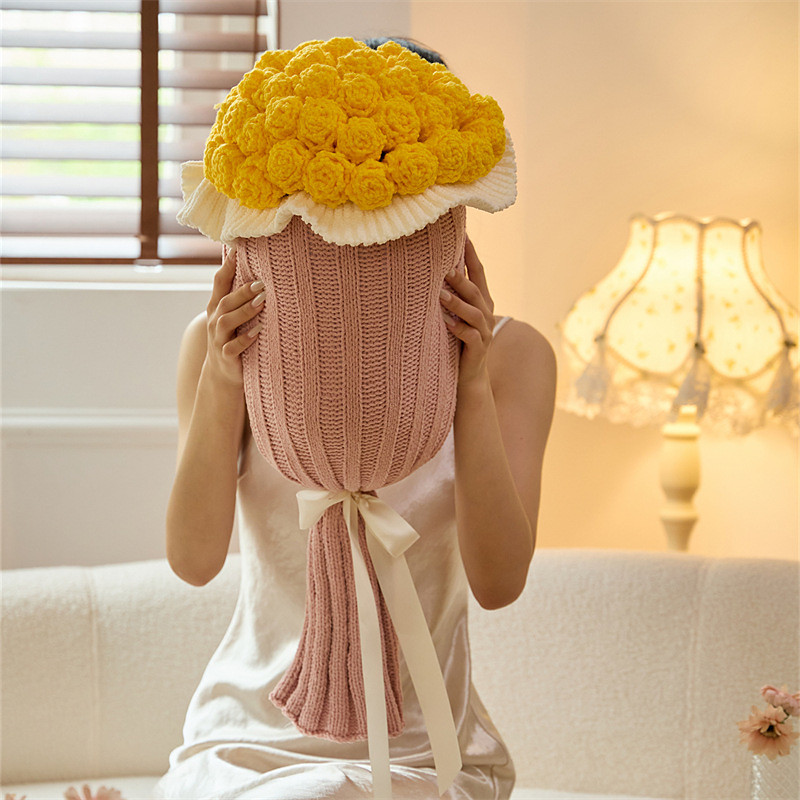 Valentine's Day Handheld Flower Bouquet Throw Pillow, Woven Floral Arrangement Decorative Cushion, Perfect Holiday Gift for Sofa, Bed, Living Room