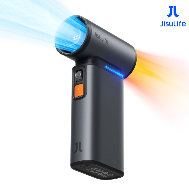 JISULIFE 2-in-1 Mini-Ventilator mit Luftstaubfunktion, Leistungsstarker Reiseventilator, Stilvoller Metall-Mini-Ventilator, Handventilatoren 1–100 Geschwindigkeiten, LED-Anzeige Handventilatoren-Dunkelgrau