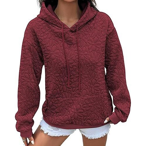 Per donna Pullover Felpe con cappuccio Semplice Moda Casual Manica Lunga Con Cappuccio Top Regolari Streetwear Abbigliamento Quotidiano Tasca Nero Bianco Vino Blu marino Marrone Autunno Inverno
