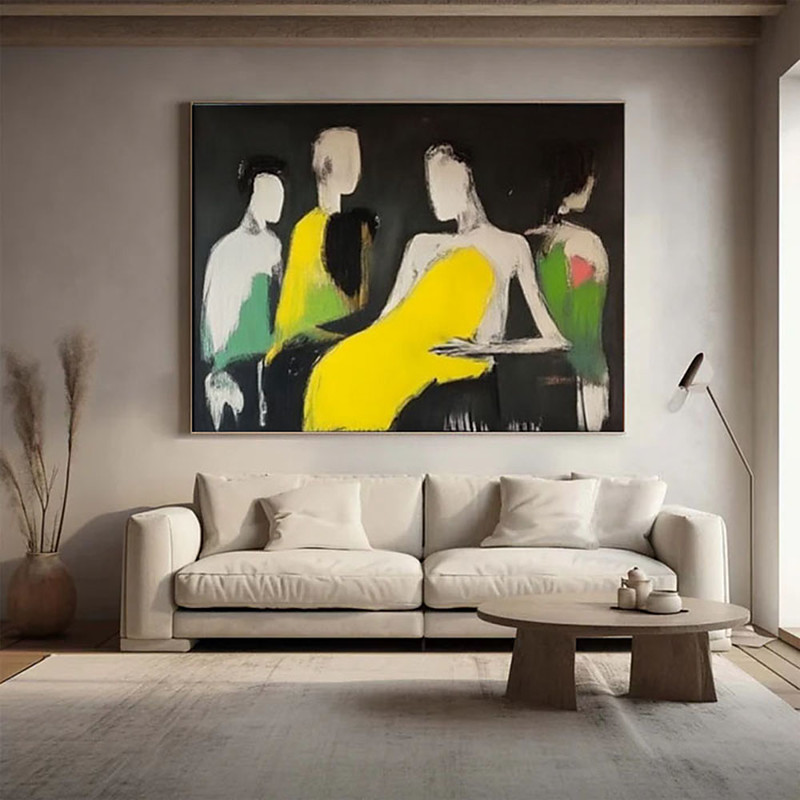 Hand Painted Large Contemporary Figurative Art Colorful Silhouette Art Original Acrylic Painting on Canvas for Home Decor Modern Canvas Wall Art