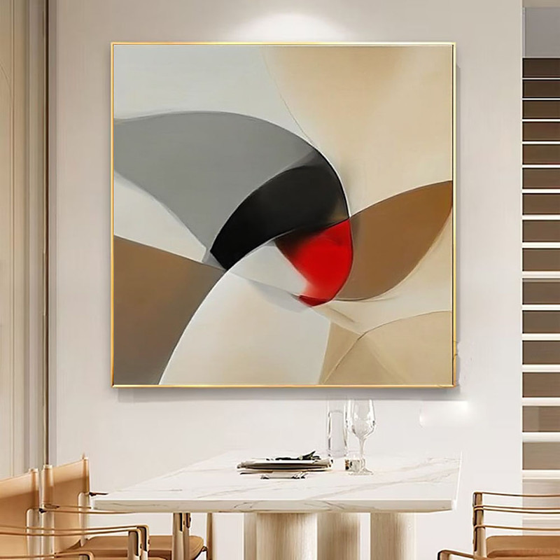 Handmade Original Minimalist Oil Painting On Canvas Abstract Red Impasto Textured Wall Art for Home Decor With Stretched Frame Without Inner Frame Painting