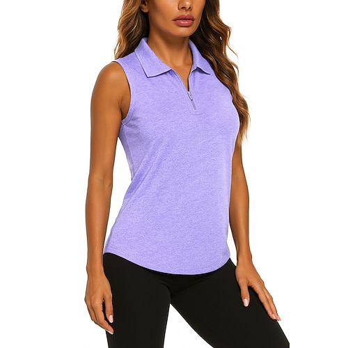 Per donna Tinta unita Maglietta sportiva Polo da golf Maglia da tennis Senza Maniche Cerniera Alta elasticità Traspirante Tennis Golf Pickleball Collo ripiegato Collo con zip Maglietta Top Rosso Viola