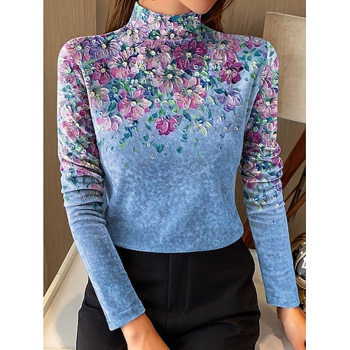 Per donna Tunica Maglietta Floreale Grafico Elegante Vintage Moda Manica Lunga Collo Alto Top Regolari Quotidiano Uscire Weekend Stampato Blu Viola Verde Primavera