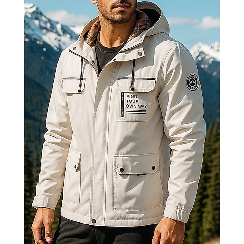 Per uomo Giacca da Esterno Giacca Casual Vacanza Quotidiano Antivento Caldo Tasca Autunno Inverno Blocco di colori Lettera Moda Classico Con Cappuccio Regolare Bianco Grigio scuro Giacca