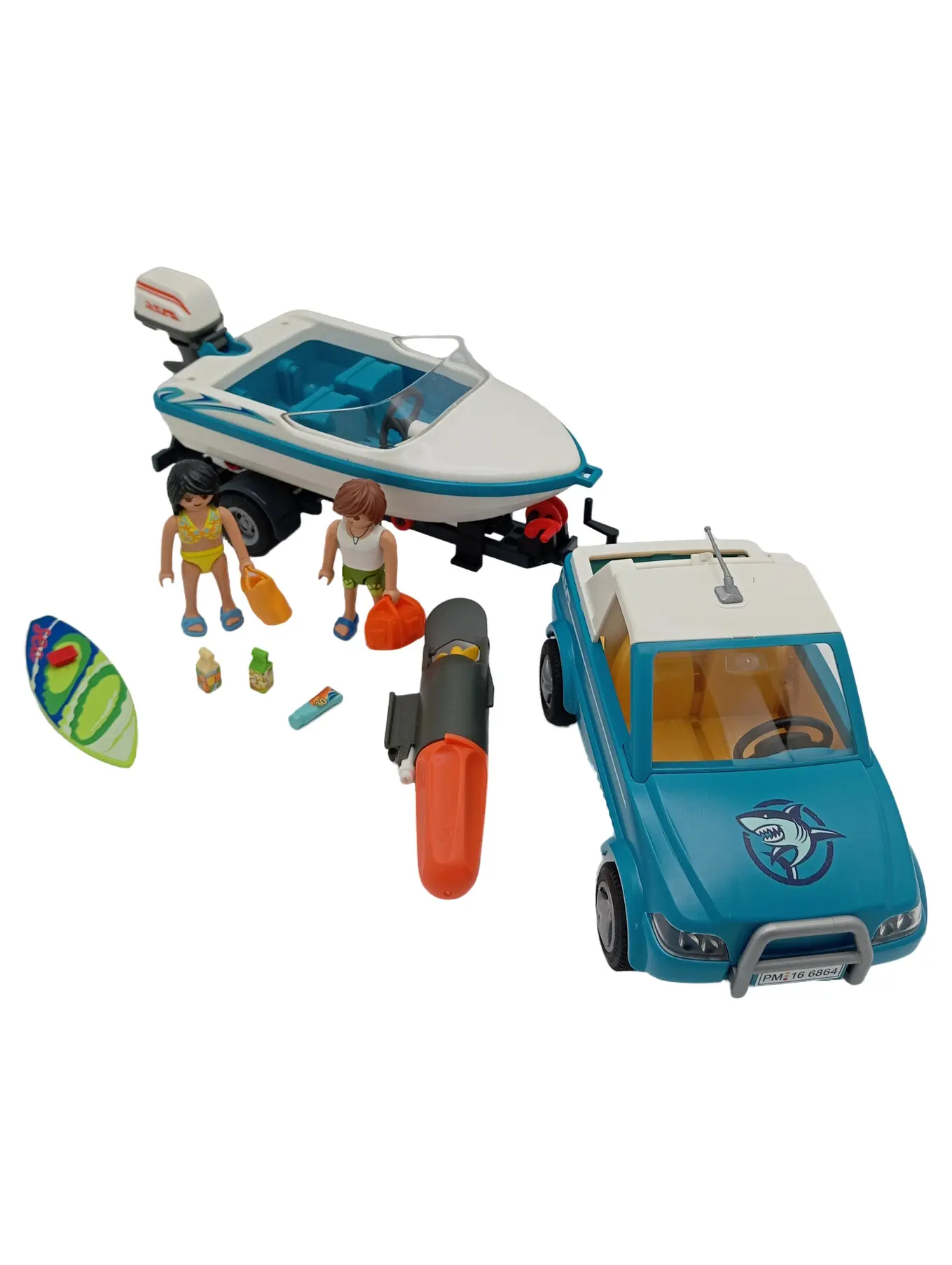 PLAYMOBIL Set Boot Auto Figuren 1989 Blau Weiß