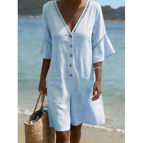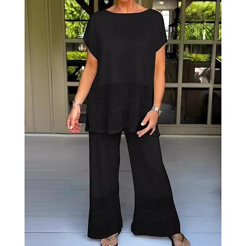 Per donna Normale Tuta Attivo Tinta unica Mezza Manica Gamba larga Scollo a V Quotidiano Spiaggia Vestibilità comoda Blu Nero Rosa Estate