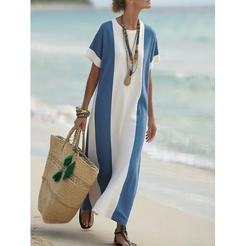 Per donna Abito maxi Vestito T-Shirt Abito a Tubino Vacanza Casual All'aperto Uscire Vestibilità comoda A righe Manica Corta Girocollo Blu Nero Marrone Viola scuro Estate Primavera