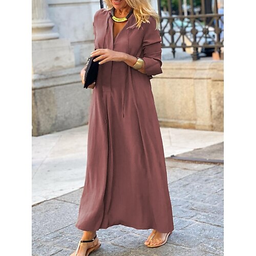 Per donna Abito maxi Abito Camicia Vestito Casual Elegante Moda Moderno All'aperto Vacanza Uscire Vestibilità comoda Semplice Manica Lunga Scollo a V Nero Rosso Blu Reale Marrone Primavera Autunno